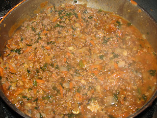Okay, this is why I say everything but the kitchen sink. If I have leftover noodles I use those but typically that is the one thing I don't have left over. I make lots of stuff with red sauce (spaghetti sauce) over the course of a few weeks so I will have several 1/2 used or less jars of sauce in my frig. This is when I make this meal. I mix all of the sauces together and they taste great! I will also save extra meat from tacos (without the seasoning) or extra hamburgers that we didn't eat. I throw those in a container in the freezer and save them just for this meal. I have also used sausage and turkey for the meat as well. I will also look for veggies in the frig that I can throw into this (as long as my husband is not eating with us).